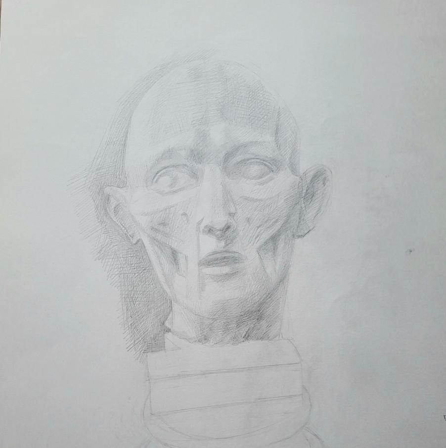 A classic academical study – a 3/4 angle ecorche. The second of the four angles, featuring the head turned slightly sideways.