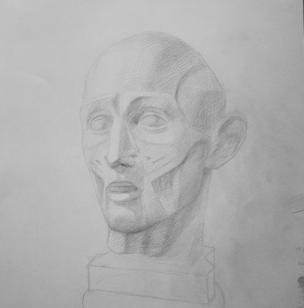 Frontal view of an ecorche. One of the most challenging angles from my point of view, one of the essentials to know if you are heading to the portraits like me when I made this artwork.